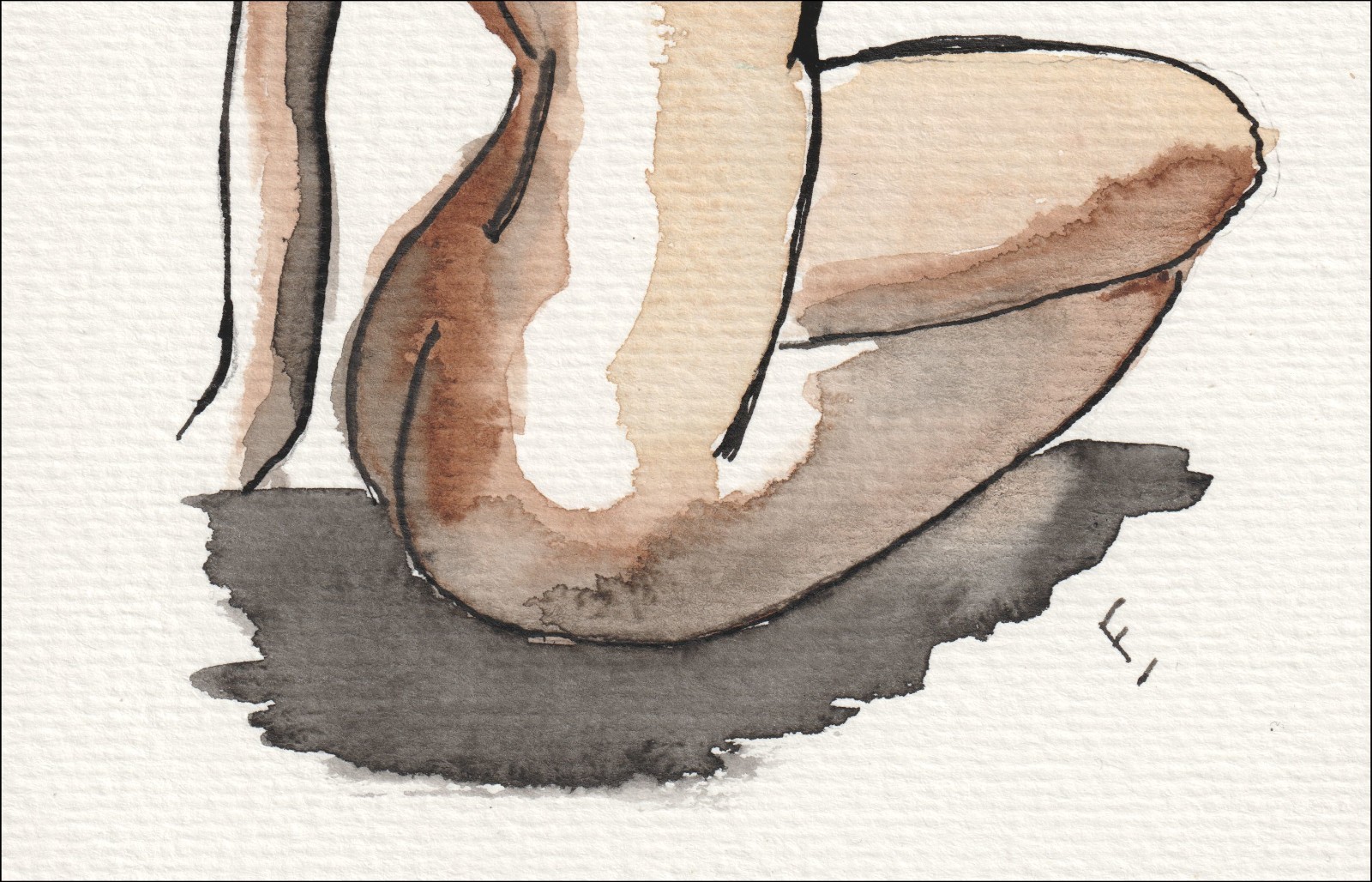 Original figurative female gesture painting in watercolour and ink.