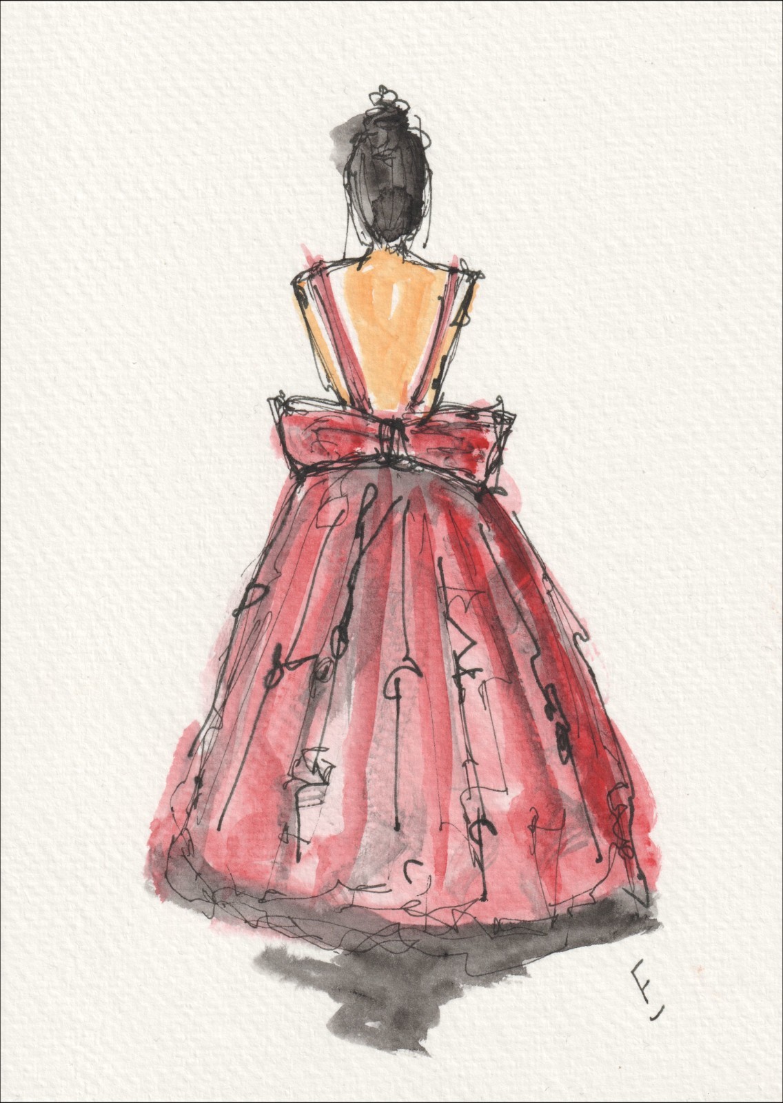 Original watercolour and ink figurative painting of a female.