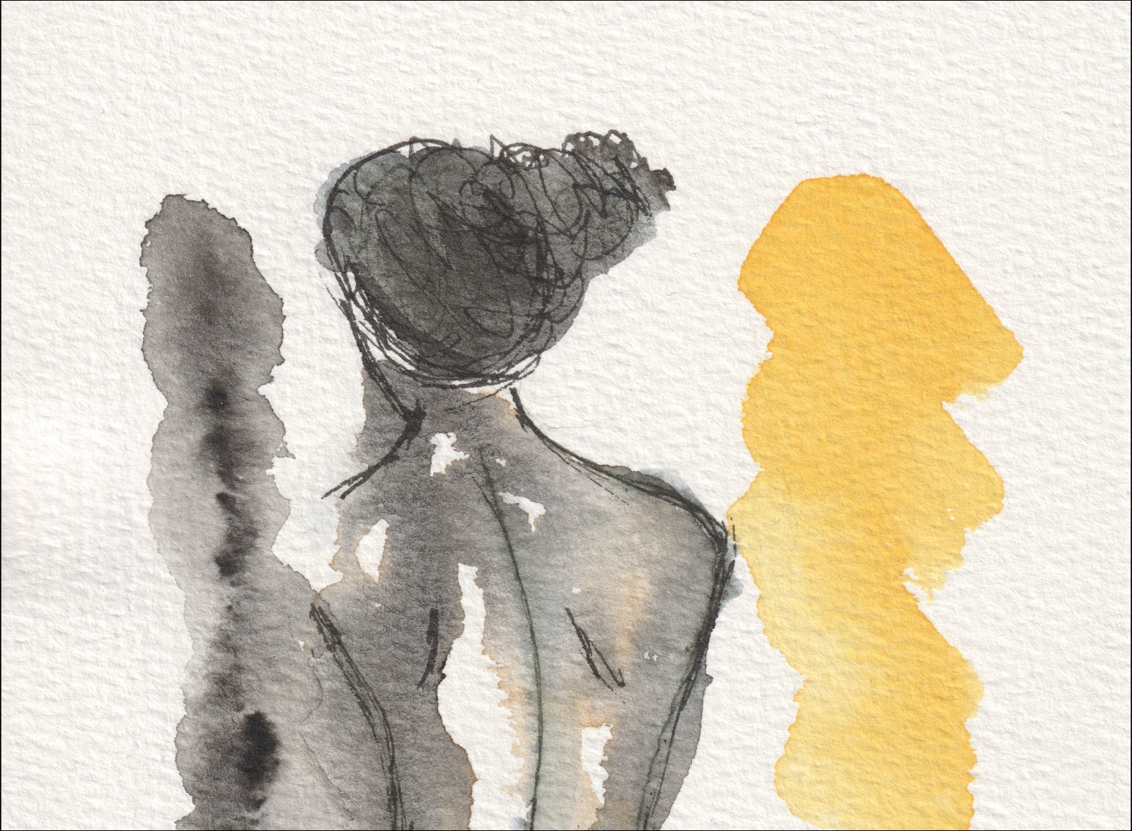 Figurative Female Sketch In Watercolour And Ink, Original Contemporary Wall Art