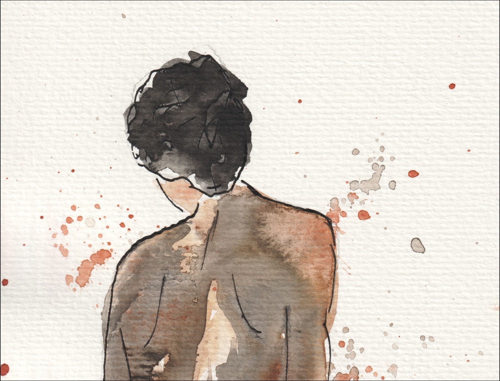Figurative Sketch Of A Female In Watercolour And Ink, Original Feminine Wall Art