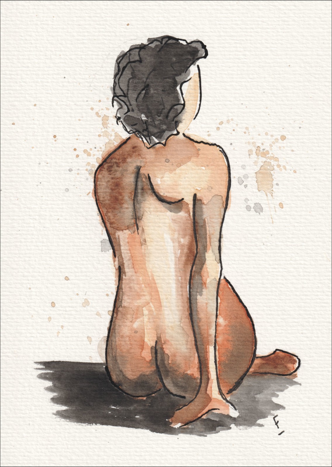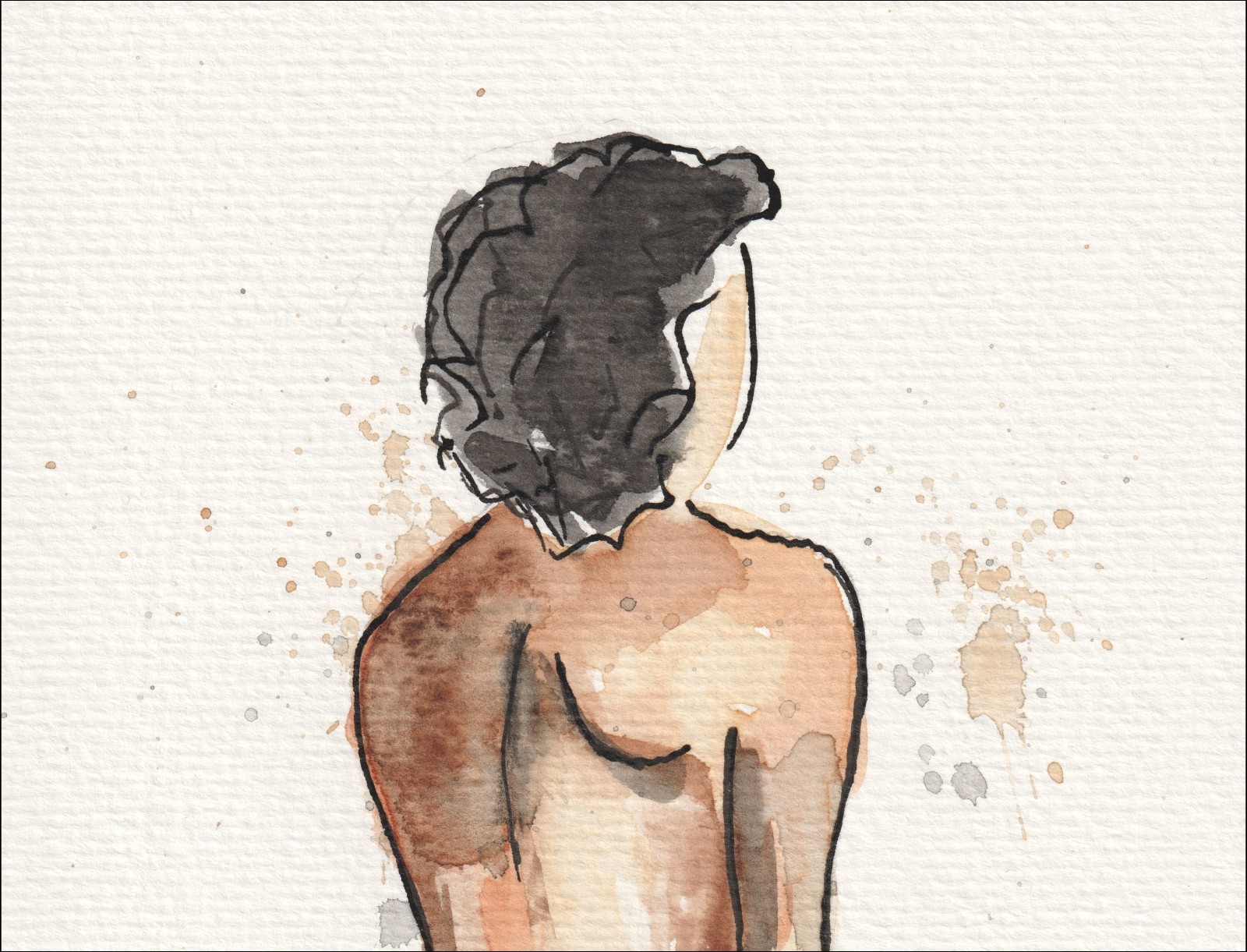 Figurative Sketch Of A Woman In Watercolour And Ink, Original Feminine Wall Art