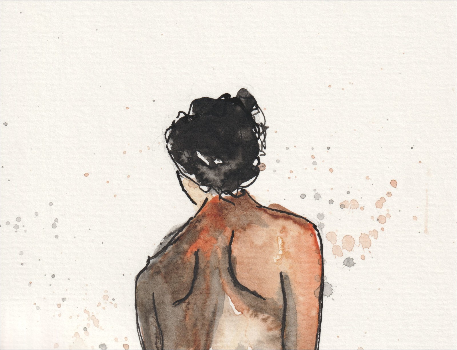 Figurative Sketch Of A Woman In Watercolour And Ink, Original Feminine Wall Art