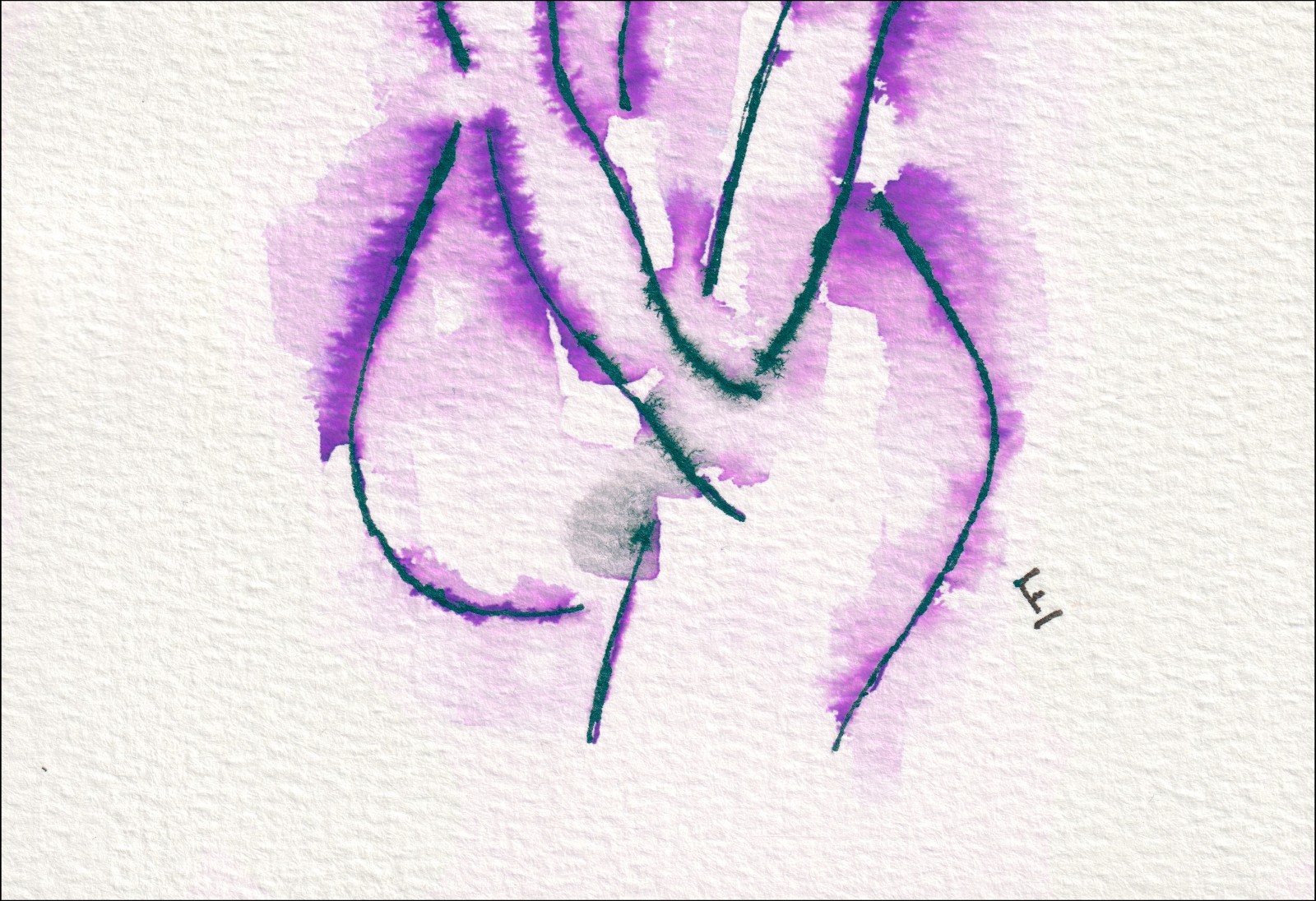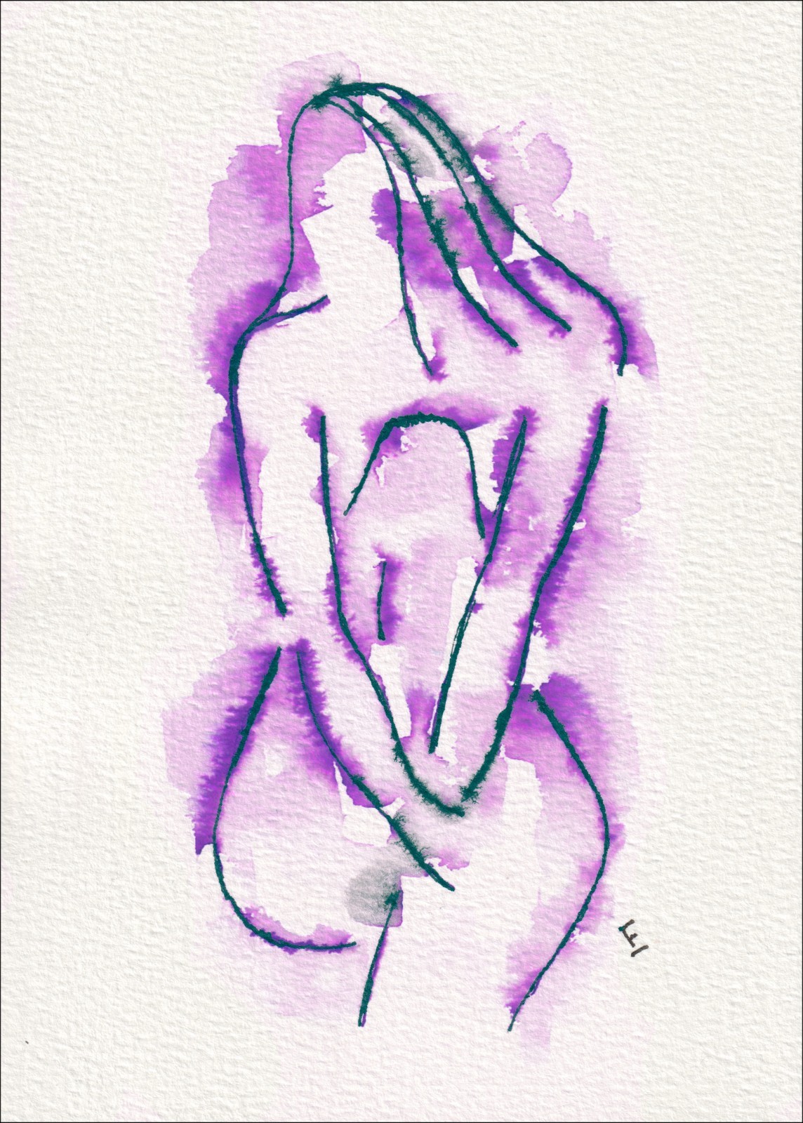 Abstract Female Figure Painting In Watercolour And Ink, Contemporary Wall Art