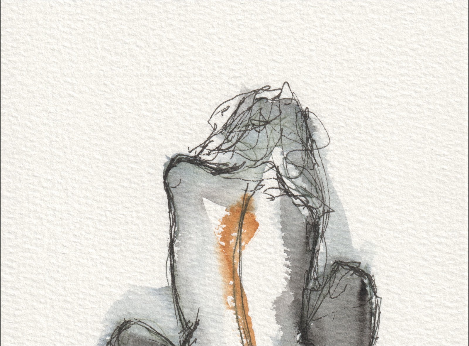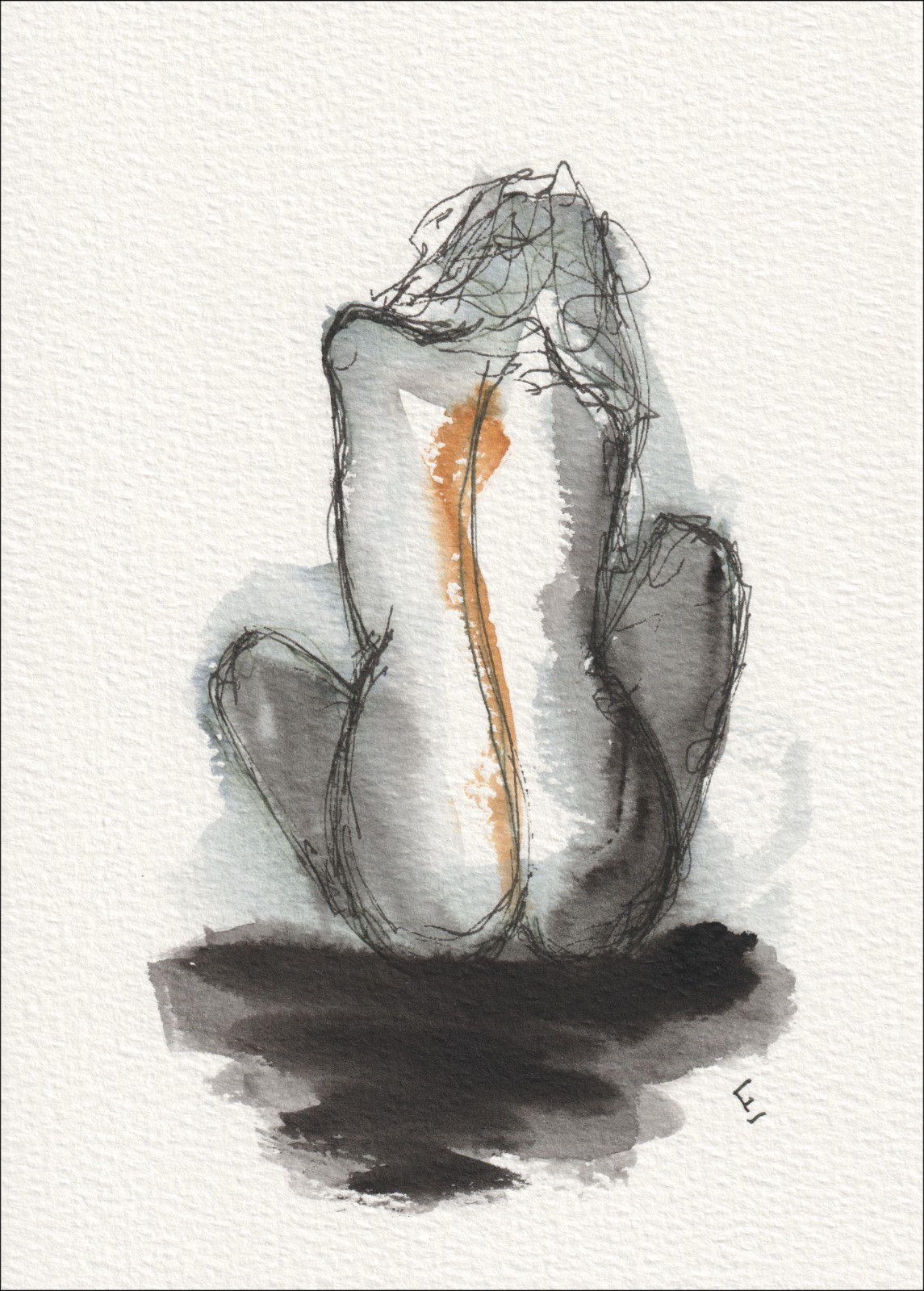 Abstract Figurative Female Watercolour And Ink Painting, Contemporary Wall Art