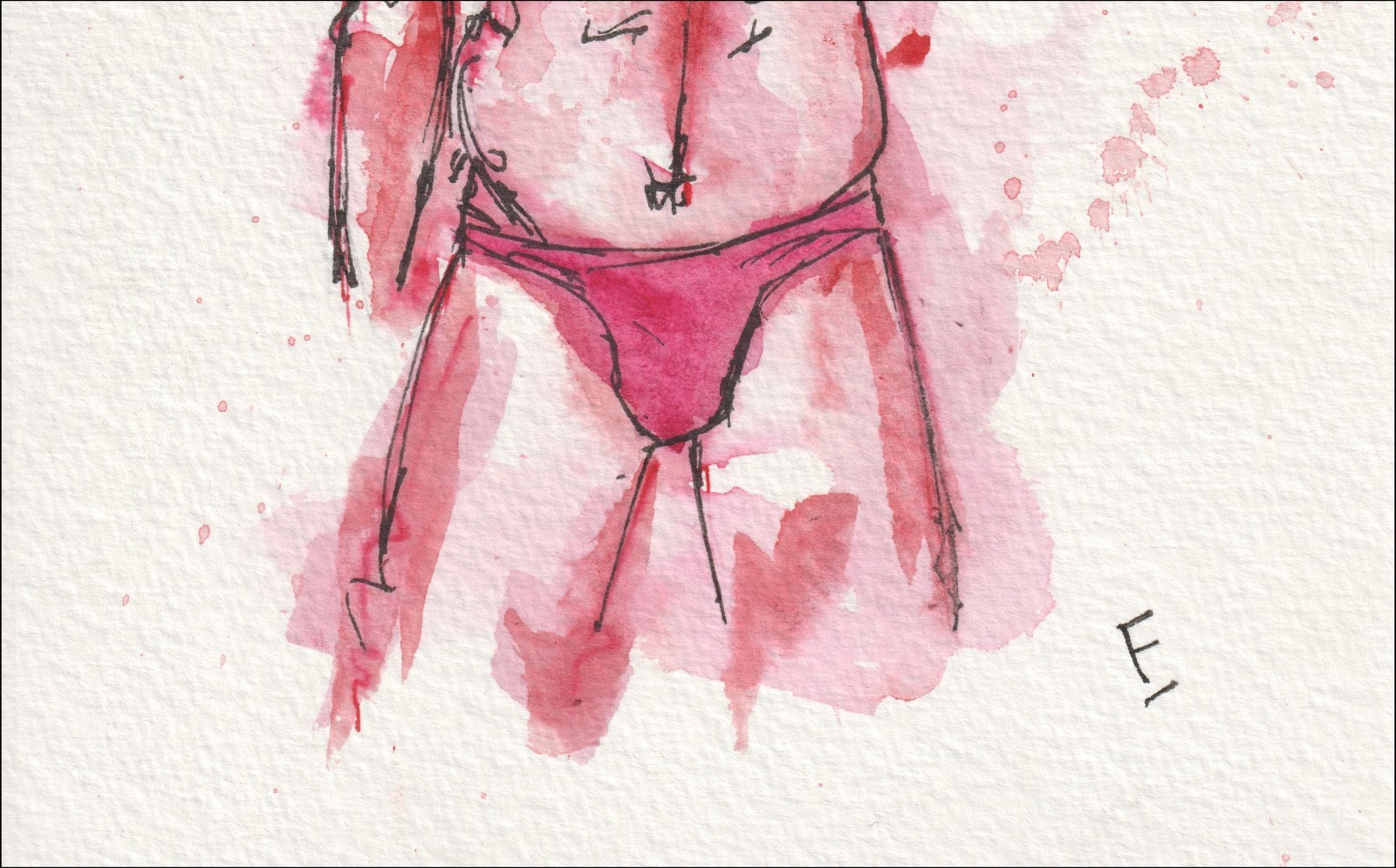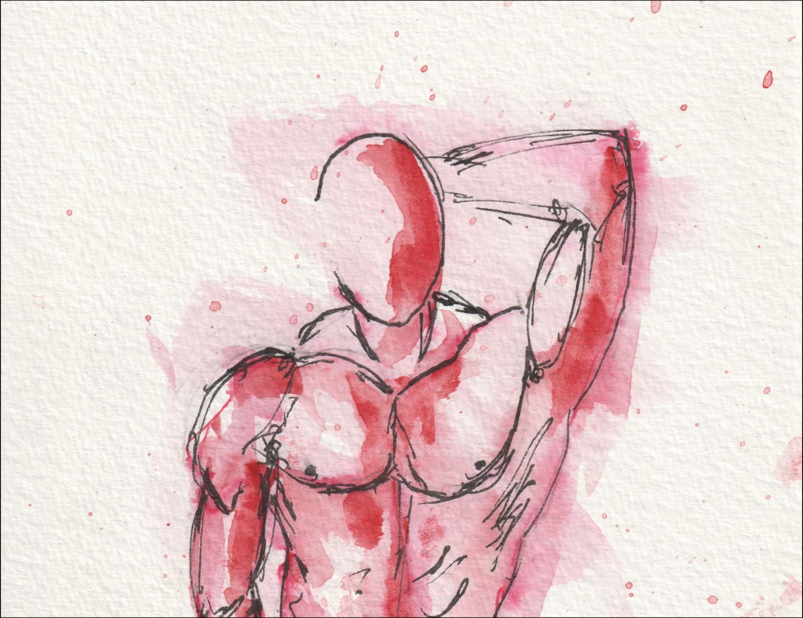An original minimalist piece of male artwork in shades of red, created and signed by myself on 7 x 5 inch 300gsm paper. This is unmounted and unframed. This is not a print.