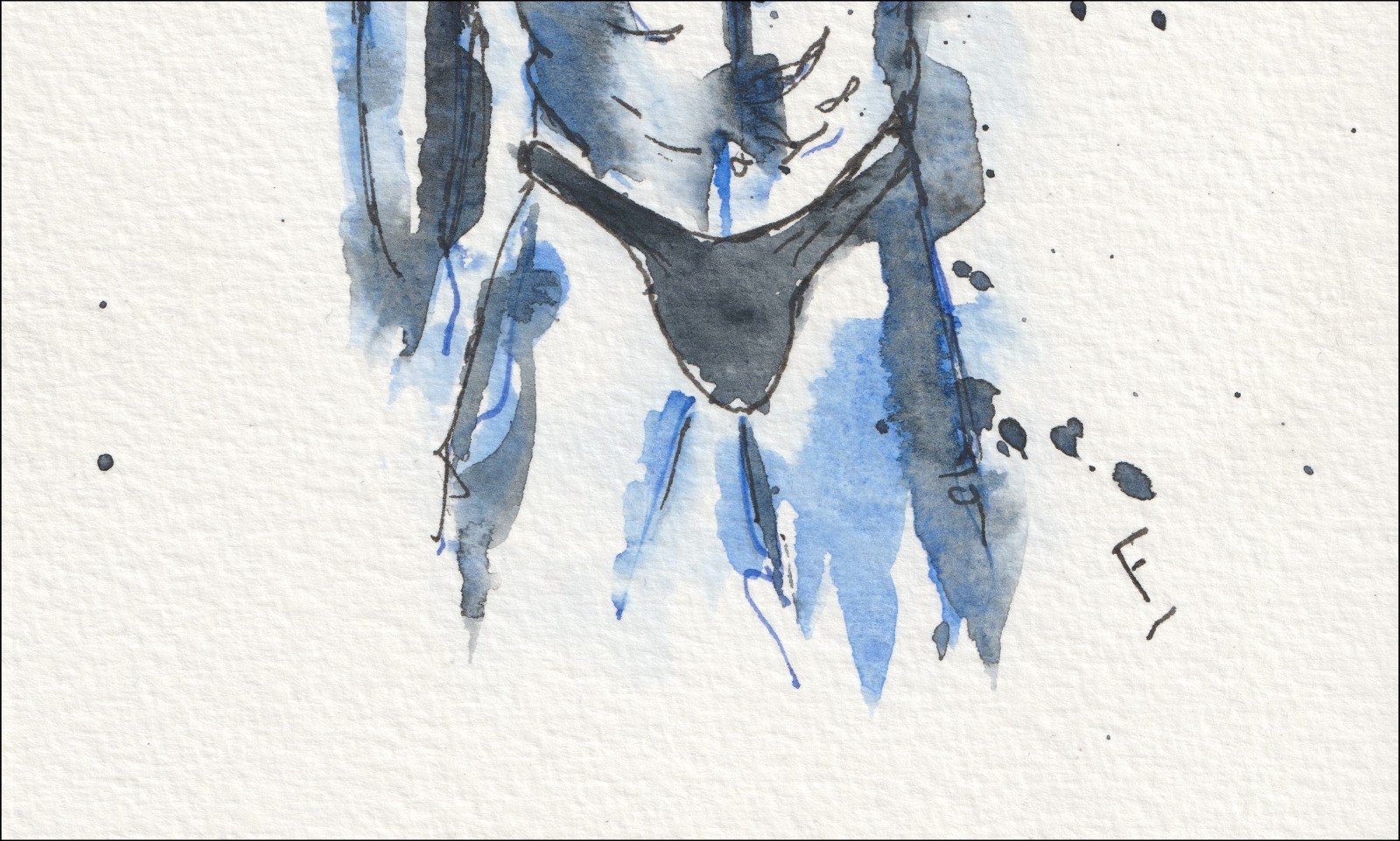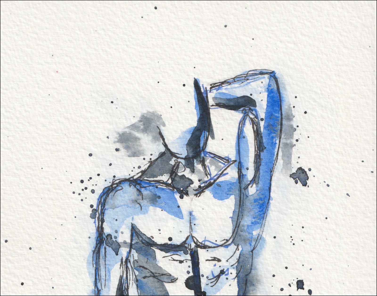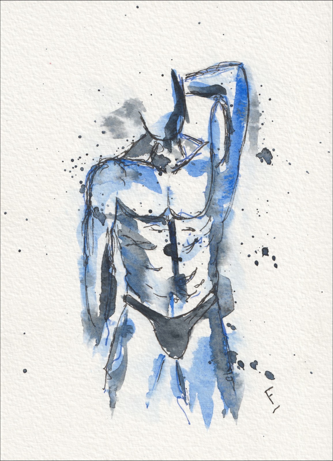 An original minimalist piece of male artwork in shades of blues and greys. Created and signed by myself on 7 x 5 inch 300gsm paper. This is unmounted and unframed. This is not a print.